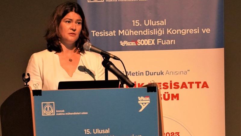 Açılışta konuşan Türk Tesisat Mühendisleri Derneği Yönetim Kurulu Başkanı Nermin Köroğlu Isın ise, iklim krizinin dünya genelinde karşı karşıya olunan en büyük sorunlardan biri olduğuna dikkat çekerek, “İklim krizi aşırı hava koşulları, su kıtlığı, deniz seviyelerinde yükselme ve diğer birçok etkiyle birlikte insanlığın geleceği için ciddi bir tehdit oluşturuyor. Makine mühendisliği iklim kriziyle mücadelede en önemli rolü üstleniyor. Çalışmaları arasında önde gelen enerjinin etkin yönetilmesi, yenilenebilir enerji kullanımı, temiz su kaynaklarına ulaşım, araç emisyonları, atık yönetimi ve atık geri dönüştürme gibi konular ile yaşanabilir ortamlar önermekte, dünya genelinde yaşanan sorunlara çözümler sunulmaktadır” dedi. Türkiye’nin rüzgar enerjisi, güneş enerjisi, biyokütle enerjisi, jeotermal enerjisi gibi temiz enerji kaynakları açısından oldukça zengin bir potansiyele sahip olduğunu ifade eden Nermin Köroğlu Isın, ülkemizin yenilenebilir enerji kaynakları açısından cennet kabul edilen 3 ülkeden biri konumunda yer aldığını bildirdi.