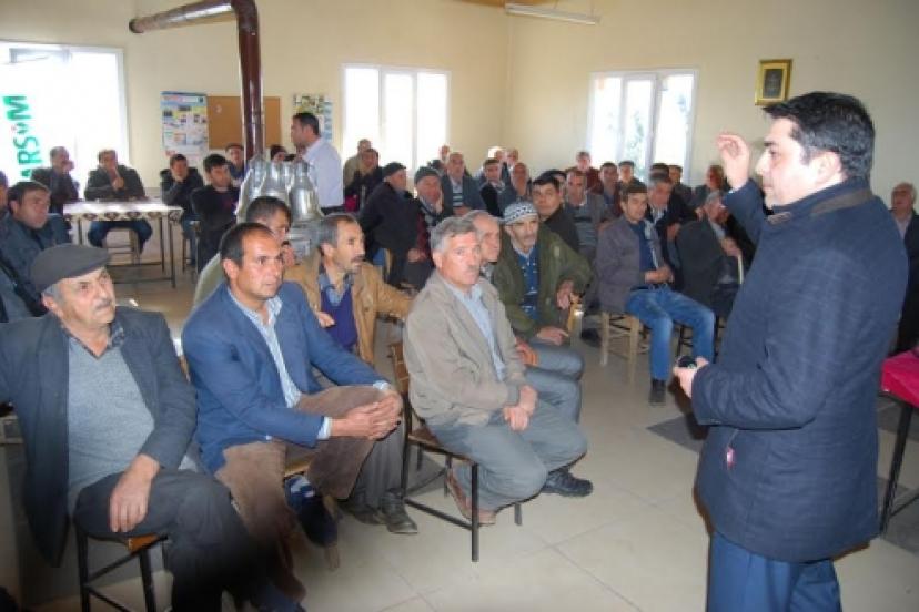 2015 yılı uygulamalarına ilave olarak 2016 yılında kapsama alınan uygulamalardan bahseden Erkan Gür, tarla ürünleri ve fidanlarda domuz zararı, eğimli arazilerde aşırı yağış sonucu yüzey akışlarının neden olduğu kayıplar ve hastalıklar, arilik belgesine sahip işletmelerde şap hastalığı riskleri konularında da çiftçilere bilgiler verdi.