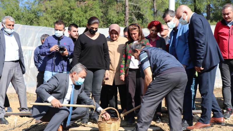Konuşmaların ardından üretici Mehmet Çınar’a ait 250 m2 alanda salep yumrularının dikimi gerçekleştirildi.