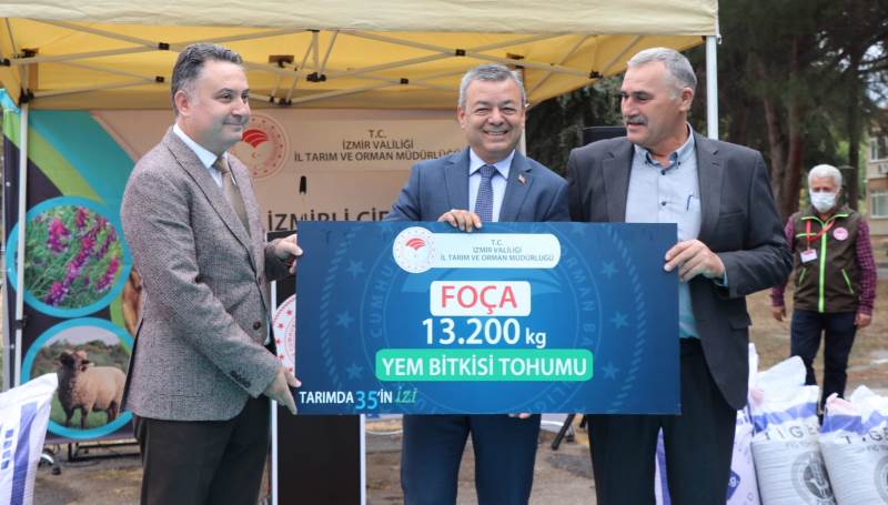 Törenin açılış konuşmasını yapan İl Tarım ve Orman Müdürü Mustafa Özen “2021 yılı başlangıcında ‘Tarımda 35’in İzi’ sloganıyla çıkmış olduğumuz yolda İzmir’in 30 ilçesine dokunan, yerinde yapmış olduğumuz tespitler, analizler sonucunda oluşturduğumuz 35 projemizle bir hedef koyduk. Gelmiş olduğumuz 10. ayda 35 projemizin %70’ini gerçekleştirmiş durumdayız. Bugün burada sahaya çıktığımız zaman üreticilerimizde sorun olarak dinlediğimiz önemli konulardan birine omuz vermek, destek olabilmek adına bir aradayız. Üreticilerimize yem bitkisi tohumu dağıtımı gerçekleştireceğiz” dedi.