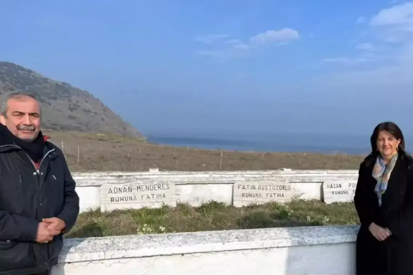 PKK elebaşı Abdullah Öcalan'la İmralı'da görüşen DEM Parti heyetinin, 60 darbesinden sonra idam edilen merhum Başbakan Adnan Menderes ve arkadaşlarının mezarlarını da ziyaret ettiği öğrenildi. Sırrı Süreyya Önder ve Pervin Buldan'ın mezarlık ziyaretindeki fotoğrafları paylaşıldı.