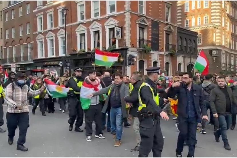 İngiltere'nin başkenti Londra'da eylem düzenleyen terör örgütü YPG/SDG yandaşları, yürüyüş sırasında iki kadına sözlü ve fiziki saldırıda bulundu.