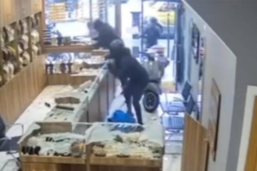 Şüpheliler motosikletle daldıktan sonra dükkandaki vitrinleri balyoz darbeleriyle indirdi ve dakikalar içinde Londra'da eşine az rastlanan bir soygun gerçekleştirdi.