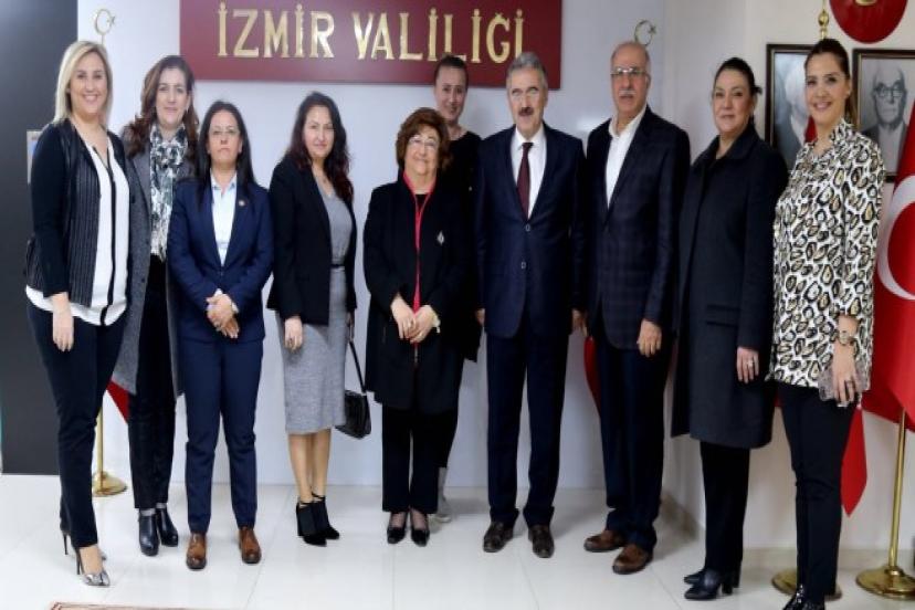 İnsan İçin Umut Derneği başkanı Menşure Gökçe beraberinde kadın kollarından temsilcilerle brlikte Eski Bakan Güldal Akşit ve eşi Haluk Akşit ile İzmir Valisi Erol Ayyıldız'ı ziyaret etti.