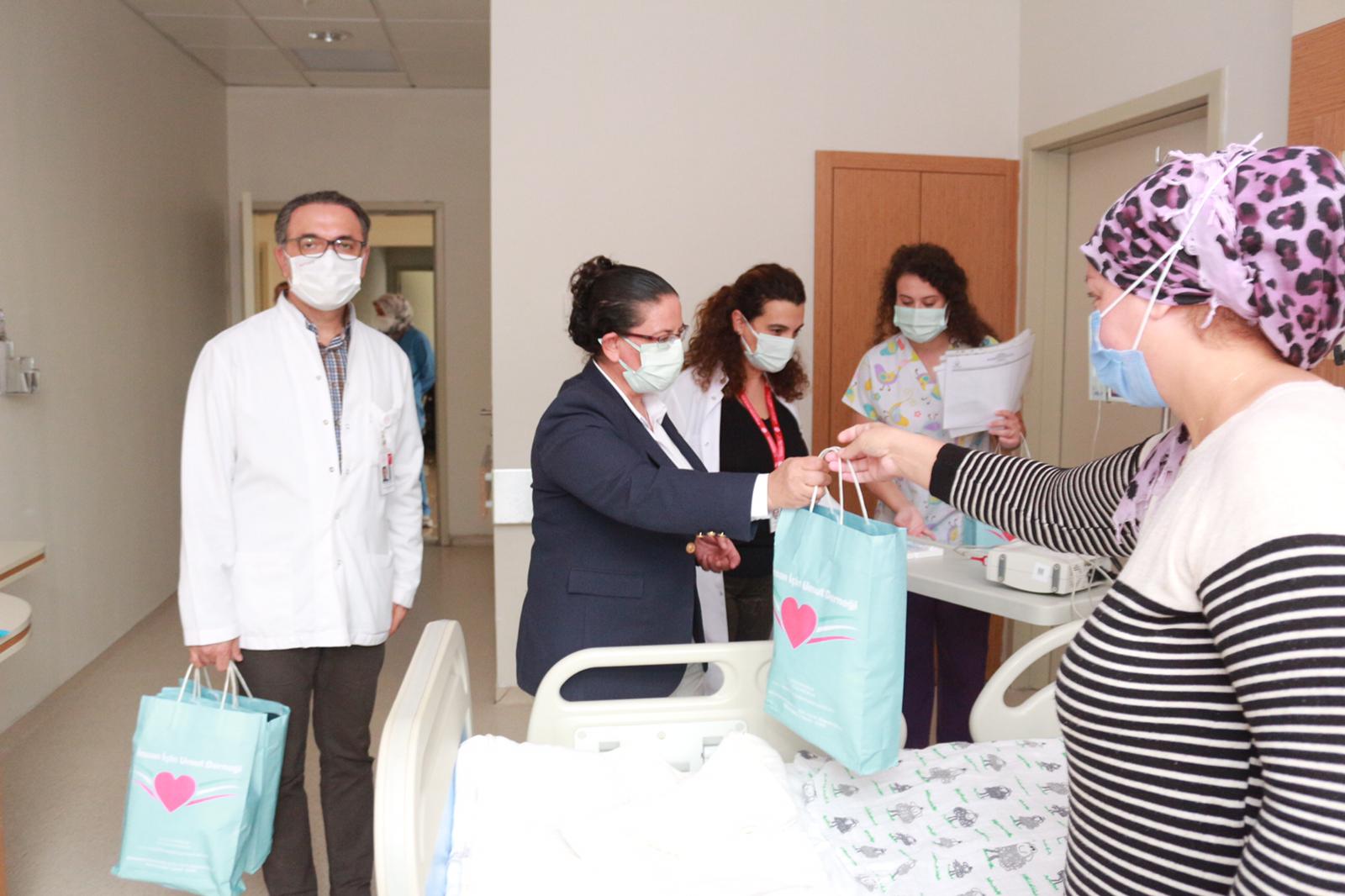 İnsan için Umut Derneği İzmir Bakırçay Üniversitesi Çiğli Eğitim ve Araştırma hastanesinde tedavi gören hastaları ziyaret ederek, onlara hem moral, hem hediyeler verdi.