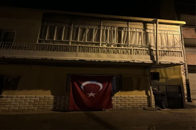 Şehidin evine Türk bayrağı asıldı.