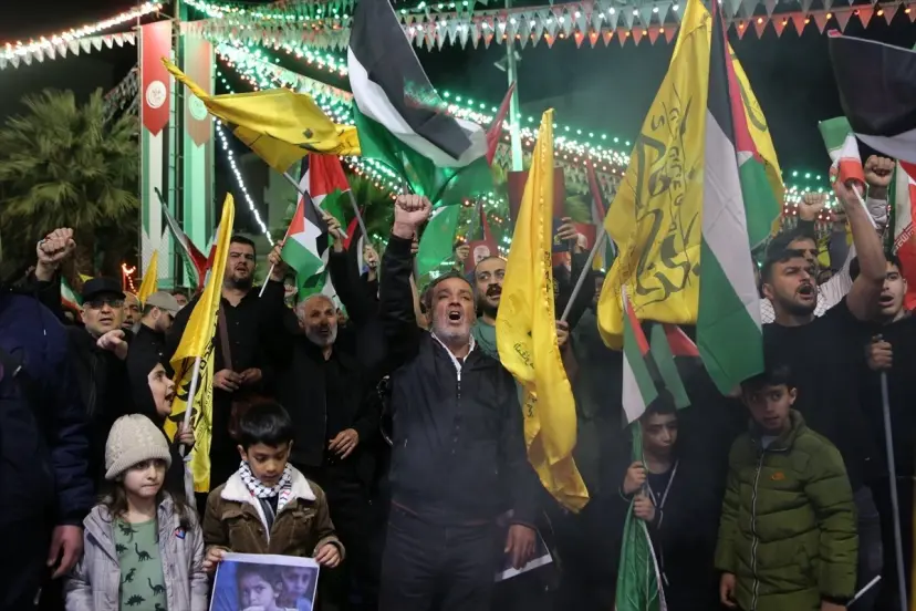 Başkentteki Filistin Meydanı'nda toplanan yüzlerce İranlı, "ABD'ye ölüm", "İsrail'e ölüm" sloganları atarak intikam çağrısında bulundu.