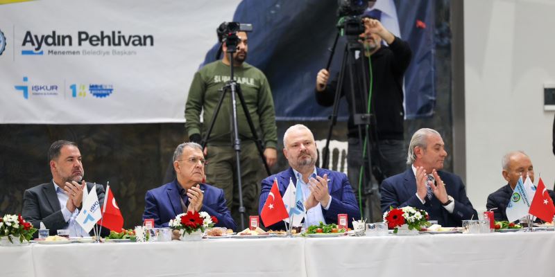 Menemen Belediye Başkanı Aydın Pehlivan, iş dünyasının üretimdeki yerine ve Türk ekonomisine olan katkısına vurgu yaptı. Pehlivan, "Türkiye Yüzyılı vizyonu kapsamında ülkemizin her geçen yıl hem niteliği hem de niceliği artan ihracatına ve ticaretine katkı sunan siz değerli firma temsilcilerine şükranlarımı sunuyorum. Sadece iş kapıları açmakla kalmadınız, aynı zamanda ailelerin umutlarını da yeşerttiniz, geleceğe olan inançlarını güçlendirdiniz. Menemen'de hep birlikte bir başarı hikayesi yazdık. Bu noktada bizler de Ulu Önder Gazi Mustafa Kemal Atatürk'ün 'Her fabrika bir kaledir.' sözünden yola çıkarak, Menemen'deki kalelerimizi güçlendirmeye kararlıyız. Cumhurbaşkanlığı tarafından onaylanan serbest bölge projemiz ve Asarlık'ta eski askeri atış alanı bölgesinde kurmak için çalışmalarına durmaksızın devam ettiğimiz karma organize sanayi bölgemizin de hizmete girmesiyle birlikte, Menemen'imiz istihdamda parmakla gösterilecek bir kent haline dönüşecek. Sizlerin de bildiği gibi çok yakın zamanda 1 milyar dolarlık bir yabancı yatırım, Menemen'de faaliyete geçmek için çalışmalarına başlayacak. Bu da gösteriyor ki, Menemen'in potansiyeli sadece bölgemizde ve ülkemizde değil, yurt dışında da artık net bir şekilde görülebiliyor. Bu potansiyeli hep birlikte daha ileri taşıyacağımızdan hiç şüphem yok. Menemen Belediyesi İŞKUR Hizmet Noktamız göreve geldiğimizden beri 17 bin 85 vatandaşımızın iş bulmasında köprü görevi görerek büyük başarı kaydetti. Bu sayıları gelecekte çok daha ileriye taşıyacağız." dedi.