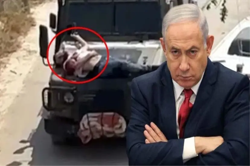 İsrail ordusunun baskın sırasında yaralı bir Filistinliyi araçlarının kaportasına bağlayarak canlı kalkan olarak kullandığı anlar, vicdanları yaraladı.