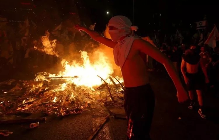 İsrail’de tartışmalı yargı reformuna yönelik protestolar devam ediyor. İsrail Başbakanı Binyamin Netanyahu, yargı reformuna karşı çıkan Savunma Bakanı Yoav Gallant'ı görevden almasının ardından halk yeniden sokaklara döküldü. Ellerinde İsrail bayrakları ile sokağa inen göstericiler, başkent Tel Aviv’deki Ayalon Otoyolu'nu trafiğe kapatarak ateş yaktı.