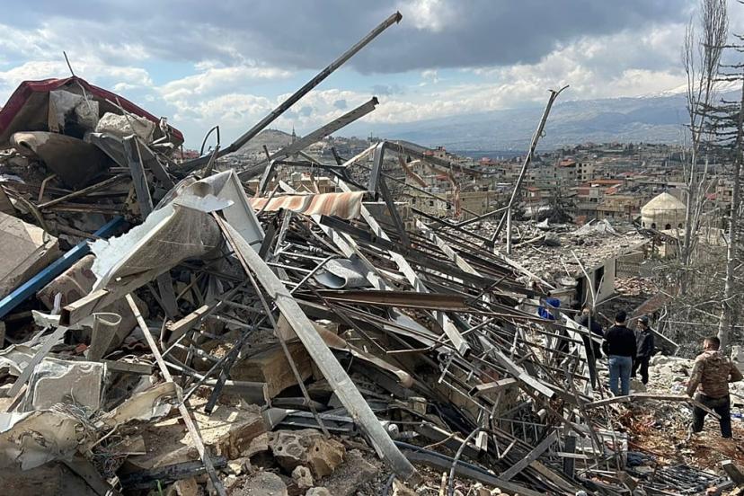 Cuma günü geç saatlerde Lübnan'ın doğusundaki Nabi Chit köyünde İsrail hava saldırılarının bıraktığı hasar kontrol ediliyor, 7 Mart 2026. AP