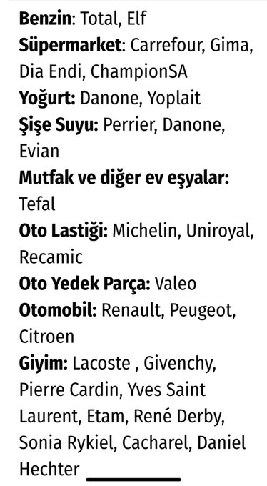 ÇAĞRISI! FRANSIZ ÜRÜNLERİ LİSTESİ...
