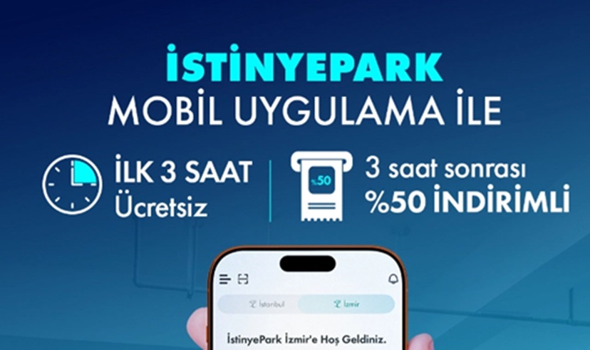 İstinyePark İzmir'de App'e özel avantajlar dikkat çekiyor. İstinyePark App'i telefonlarına indiren kullanıcılar, ilk 3 saat ücretsiz, sonrasında %50 indirimli otopark avantajına sahip olacak.
