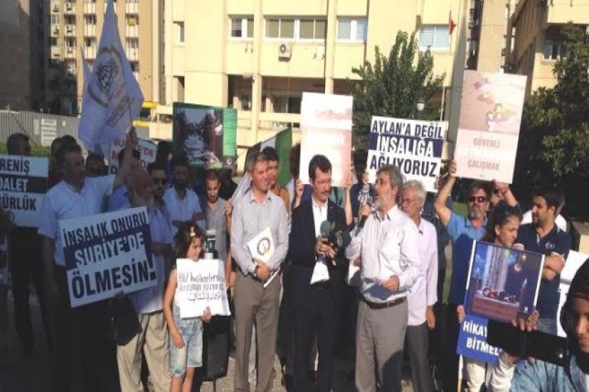 İzmir Sivil Toplum Platformu (İSTOK) Konak meydanında üyeleri le birlikte toplanarak Suriye Savaşı ve mülteci sorunun nedeniyle barış istemeyen güçlerin bugün ortaya çıkan trajediden sorumlu olduğunu dile getirerek, yaşananları telin ettiler.