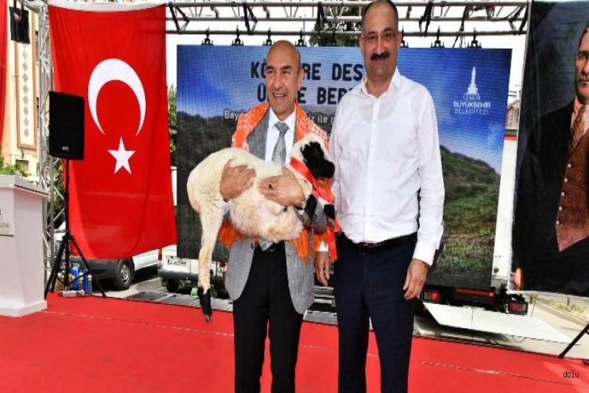 Kendilerine yeni bir gelir kaynağı yaratmak isteyen ancak imkansızlıklar nedeniyle başaramayan Beydağlı çiftçilerin yüzü, Büyükşehir’in desteği ile güldü. Beydağ ilçe merkezinde İzmir Büyükşehir Belediye Başkanı Tunç Soyer’in katıldığı törenle yetiştiricilik eğitimini tamamlayarak destekten yararlanmaya hak kazanan 23’ü kadın 130 üreticiye 520 adet küçükbaş hayvan dağıtıldı. Beydağ’da daha önce 13 üreticiye 50 küçükbaş dağıtılmıştı. Son dağıtımla bu sayı on kat artırıldı. Çekilen kuraların ardından üreticiler yeni geçim kapıları olac ak küçükbaş hayvanları teslim aldı. İlçe merkezinde düzenlenen törene CHP İl Başkanı Deniz Yücel, Beydağ Belediye Başkanı Feridun Yılmazlar, Ödemiş Belediye Başkanı Mehmet Eriş, Menderes Belediye Başkanı Mustafa Kayalar, muhtarlar, belediye bürokratları, üreticiler ve vatandaşlar katıldı.