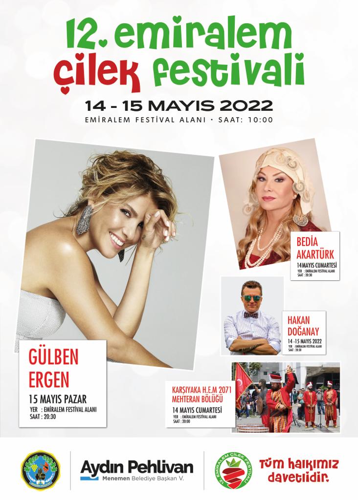 Menemen’de, bu yıl 12’incisi gerçekleşecek olan ve ilçenin tanıtımı açısından önemli etkinliklerin başında yer alan Emiralem Çilek Festivali heyecanı yaşanıyor. 14-15 Mayıs tarihlerinde düzenlenecek festivalde; çocuk atölyelerinin yanı sıra, ‘En Güzel Çilek Bahçesi’, ‘En Güzel Çilek’, ‘En Güzel Çilekli Pasta’ yarışmaları gerçekleştirilecek. Yöre halkı, kurulan üretici pazarında iki gün boyunca çileklerini görücüye çıkaracak. 14 Mayıs Cumartesi Günü saat 17.00’da kortej yürüyüşü düzenlenecek. Emiralem Dörtyol Kavşağı’nda başlayacak olan kortej, Emiralem Engelsiz Yaşam Merkezi’nde sona erecek. Saatler 20.30’u gösterdiğinde ise ünlü sanatçı Bedia Akartürk, en sevilen türküleri festivale katılanlarla birlikte söyleyecek. 15 Mayıs Pazar Günü saat 20.30’da ise sevilen şarkıcı Gülben Ergen konser verecek.