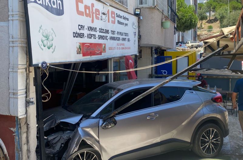 İzmir’in Karabağlar ilçesi Yurtoğlu’nda meydana gelen kaza da kontrolünü yitiren bayan araç sürücüsü Kafeye daldı.