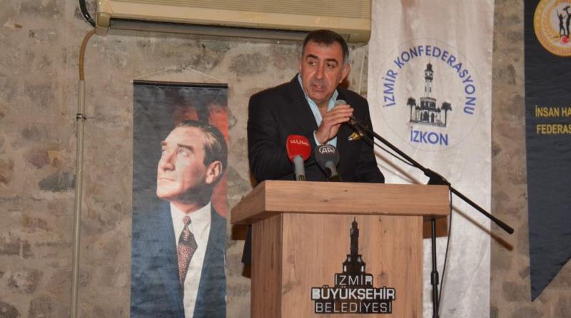 İzmir Konfederasyonu Başkanı Ferhan Ademhan, Alsancak Havagazı Fabrikası’nda düzenlediği geniş katılımlı basın toplantısında terör örgütü PKK’ya yönelik “Silahlar sussun” çağrısında bulundu. İzmir Konfederasyonu çatısı altındaki dernek, federasyon ve sivil toplum örgütleri başkanlarının destek verdiği basın toplantısında konuşan Başkan Ferhan Ademhan, 10 Aralık 1948 tarihinde Birleşmiş Milletler tarafından, 27 Mayıs 1949 tarihinde de Türkiye Cumhuriyeti’nce kabul edilen İnsan Hakları Evrensel Bildirisi’ni hatırlatarak, başta Türkiye Cumhuriyeti vatandaşları olmak üzere, tüm insanlığın Dünya İnsan Hakları Günü’nü kutladı.