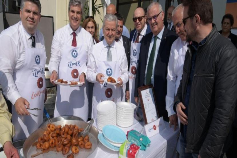 İzmir Ticaret Odası Yönetim Kurulu Başkanı Ekrem Demirtaş, Meclis Başkanı Rebii Akdurak, Ege Üniversitesi Mühendislik Fakültesi Gıda Mühendisliği Bölümü Başkanı Prof. Dr. Şebnem Tavman, İTO Yönetim Kurulu ve Meclis üyelerinin katılımıyla, Oda önünde İzmir Lokması döküldü.