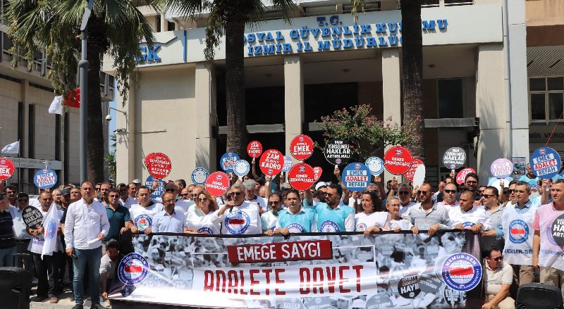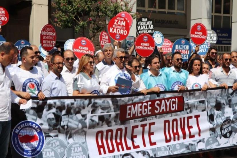 Memur-Sen, 5. Dönem Toplu Sözleşme görüşmelerinin uzlaşmazlıkla sonuçlanarak Kamu Görevlileri Hakem Kuruluna taşınması üzerine 81 ilde "Emeğe saygı, adalete davet" temasıyla basın açıklaması kararı aldı. Memur-Sen İzmir İl Temsilciliği tarafından da SGK İl Müdürlüğü önünde basın açıklaması düzenlendi. Grup adına açıklama yapan Memur-Sen İl Temsilcisi ve Eğitim-Bir-Sen İzmir Şube Başkanı Ali KAYA, "Memur-Sen'in teklifleri milletin talepleridir. Çünkü bu teklifler milletin maşeri vicdanında makes bulmuş adil ve hakkaniyetli tekliflerdir. Bu nedenle kamu işvereninin, Merkez Bankası'nın gerek beklenti anketinde, gerekse kendi tahmininde ifade ettiği rakamların altında kalan tekliflerle gelmesini kamu görevlilerinin emeğini değersizleştirmek olarak görüyor ve algılıyoruz. Maalesef, Hakem Kuruluna gitme süreci de kamu işvereni tarafından hakkaniyetli yürütülmemiştir. 20 günlük adeta insanüstü çabalarla görüşülerek üzerinde uzlaşma sağlanan azımsanmayacak sayıda kazanımlarımız Hakem Kuruluna giderken yok sayılmıştır" diye konuştu.
