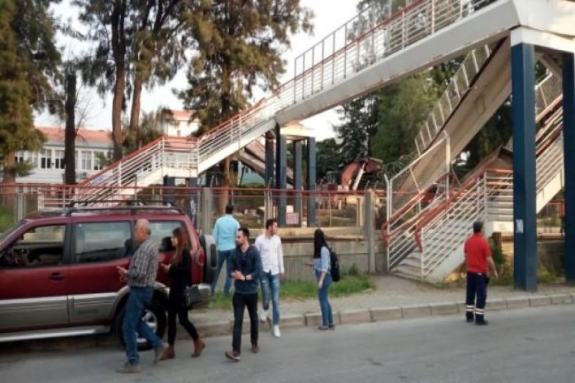 İzmir-Ağaçlıyol Bornova metrosunun Sanayi Durağı'nda üst geçide vinç çarptı. Bir süredir metro seferleri yapılamıyor.