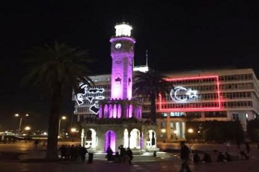 İzmir Saat Kulesi'ne Mor Renk Yakıştı
