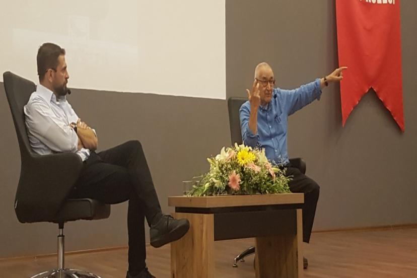 Prof. Dr. Doğan Cüceloğlu ve Sosyolog Polat Doğru, İzmir Sınav Koleji’nin Buca Kampüsünde düzenlediği “Geliştiren Anne Baba” seminerinde veliler ile buluştu.