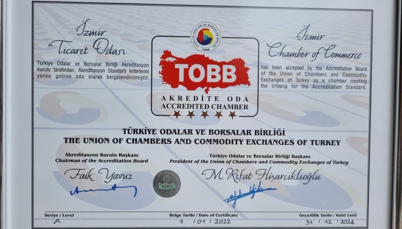 İzmir Ticaret Odası (İZTO), üyelerine kaliteli hizmet vermek için yaptığı çalışmaların karşılığını alarak “Türkiye akreditasyon birincisi” oldu. Türkiye Odalar ve Borsalar Birliği (TOBB) Akreditasyon Sistemi çerçevesinde, 2021 yılında denetime giren Ticaret Odaları arasında en yüksek puanı elde ettiklerini söyleyen İZTO Yönetim Kurulu Başkanı Mahmut Özgener, “90 bine yakın üyemiz için yaptığımız çalışmaların bir ödülü olan bu sertifika bizim için çok kıymetli. Üyelerimize verdiğimiz tüm hizmetlerde önceliğimiz her zaman ‘kalite’ oldu. Çalışmalarımızın böyle anlamlı bir ödül ile taçlanması bizi gururlandırdı. Bu motivasyonla, aynı anlayış ve istekle projelerimizi gerçekleştirmeye devam edeceğiz.” dedi.