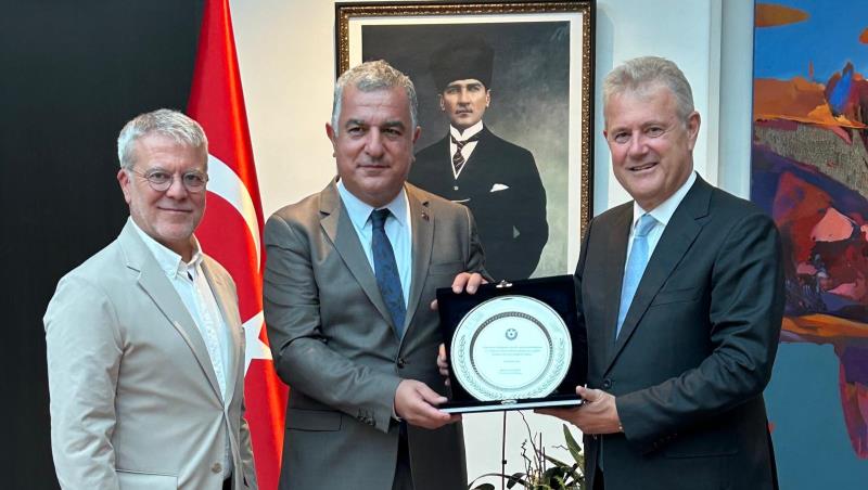 Berlin ziyaretinin ilk gününde, İzmir Ticaret Odası Yönetim Kurulu Başkanı Mahmut Özgener, T.C. Berlin Büyükelçisi Ahmet Başar Şen'i ziyaret etti. İzmir Ticaret Odası Yönetim Kurulu Başkan Yardımcısı Emre Kızılgüneşler, Meclis Üyesi Dr. Ferzan Yalkut, Genel Sekreter Prof. Dr. Mustafa Tanyeri ile Genel Koordinatör Pınar Karayılanoğlu’nun katıldığı ziyarette, İzmir Ticaret Odası’nın çalışmaları ve devam eden projeleri ile İzmir Ekonomi Üniversitesi hakkında bilgiler paylaşıldı. Berlin’deki Yapay Zeka Araştırma Merkezleri ile yapılacak işbirlikleri konusunda görüş alışverişinde bulunuldu.