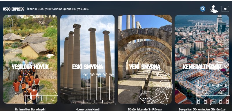 “İzmir’in 8500 yıllık tarihine günübirlik yolculuk” temasıyla ortaya çıkan 8500 Express, Yeşilova Höyük, Eski Smyrna, Yeni Smyrna ve Kemeraltı İzmir olmak üzere 4 ana başlıktan oluşuyor. Her başlığın altında, görülmesi gereken tarihi noktalar görselleri ile birlikte anlatılıyor. Broşüre tıklayan misafirler, Kızlarağası Hanı’ndan, Kordon Boyu’na kadar pek çok noktaya üç boyutlu bir dijital tasarımla ulaşabiliyor.