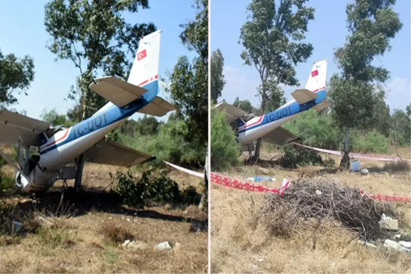 İzmir'de araziye çakılan uçak motor arızası nedeniyle düşmüş