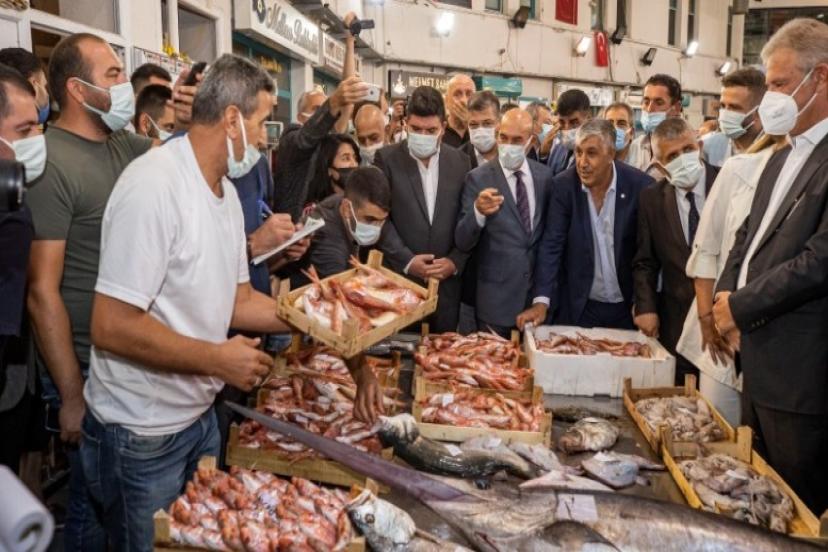 İzmir Büyükşehir Belediye Başkanı Tunç Soyer, av yasağının sona ermesi nedeniyle İzmir Büyükşehir Belediyesi Su Ürünleri Hali’nde düzenlenen geleneksel buluşmaya katıldı. Haldeki esnafı ziyaret eden Başkan Soyer, aylar sonra ilk ağlarını atan balıkçıların bereketli bir sezon geçirmesini diledi.