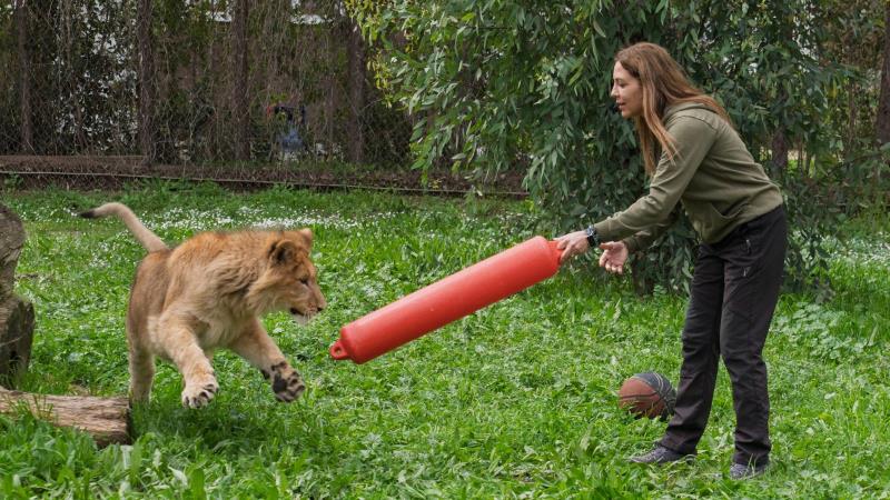 İzmir’in Torbalı ilçesinde güvenlik güçleri tarafından bir çiftliğe yapılan baskında ele geçirilen yavru aslan, İzmir Büyükşehir Belediyesi Doğal Yaşam Parkı’na teslim edildi. Henüz 10 aylık olduğu tahmin edilen ve uygun olmayan koşullarda yalnızca kedi maması ile beslendiği belirlenen yavru aslan bir ay süren tedavi ve bakımın ardından kendini toparladı. Minik yavru günlerini veteriner hekimlerin gözetiminde oyunlar oynayarak geçiriyor.