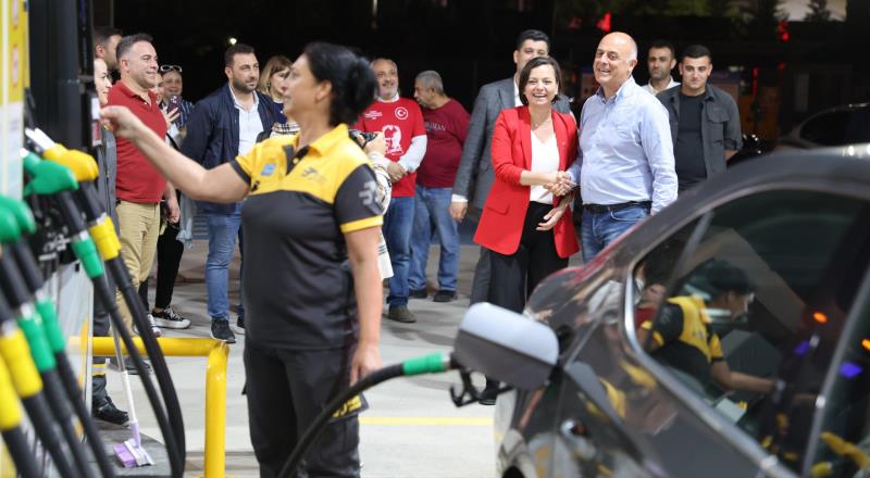 CHP İzmir Milletvekili Ümit Özlale de istasyona gelerek aracına yakıt aldı. Kadınlara öncelik verilen bu projeden dolayı Başkan Helil Kınay’a “hayırlı olsun” dileklerini iletip kendisini kutladı.