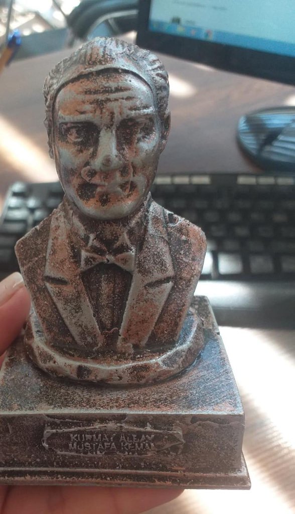 İzmir’de, CHP Konak İlçe Başkanı Çağrı Gruşçu’nun muhtarlara dağıttığı Atatürk büstü tartışmalara neden oldu. Büstün Atatürk’e benzememesi ve altında ‘Kurmay Albay Mustafa Kemal’ yazmasına tepki gösteren AK Parti İzmir İl Başkanı Kerem Ali Sürekli, ‘’CHP’nin elinden yok sayılamayacak bir “Atatürk” faciası daha! Aslında çok söze hacet yok! Her vatansever, bu fotoğrafı gördüğünde yanlışı da görür" dedi.
