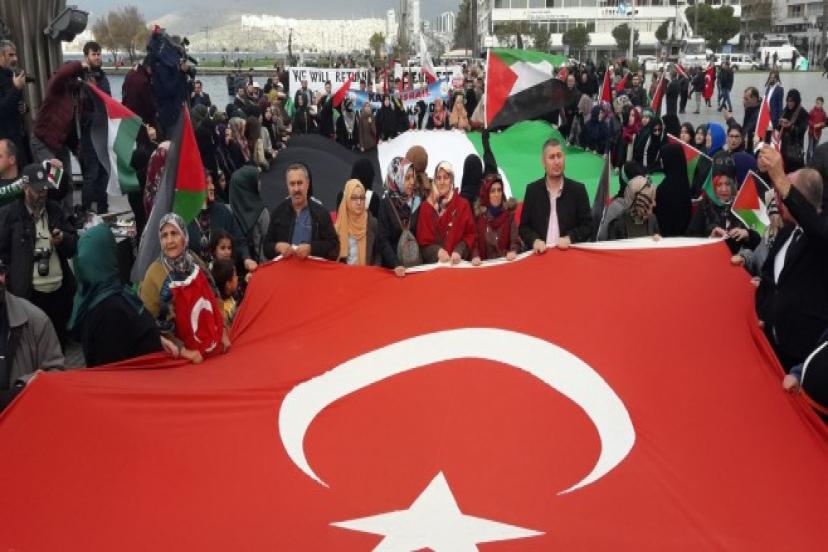 İzmir'de bazı sivil toplum kuruluşları ve sendikaların katılımıyla oluşturulan Kudüs Platformu, "Özgür Kudüs Yürüyüşü" düzenledi.