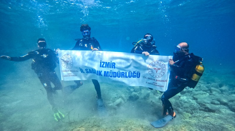 03-09 Eylül Halk Sağlığı Haftası etkinlikleri kapsamında İzmir ‘in Karaburun İlçesinde deniz altında Halk Sağlığı Haftası kutlandı.