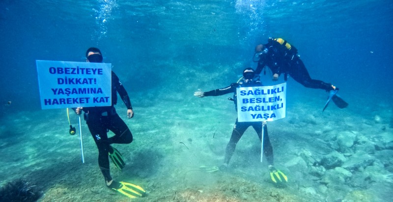 İzmir İl Sağlık Müdürü Doç. Dr. M. Emre Erkuş, Halk Sağlığı Hizmetleri Başkanı Uzm. Dr. Ali Emre Çetinkol ve bir grup sağlık çalışanı Türkiye sayılı dalış merkezlerinden birisi olan İzmir Karaburun Dalış Merkezi’nin profesyonel dalgıç ekibiyle denizin altına tüplü dalış gerçekleştirdi. Suyun altında İzmir İl Sağlık Müdürlüğü ve“ Sağlıklı Beslen Sağlıklı Yaşa”, “ Obeziteye Dikkat!” ve “ Yaşamına Hareket Kat ”afişlerini açarak sağlıkla ilgili mesajlar verildi.