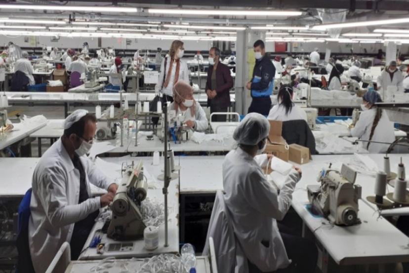 İzmir Büyükşehir Belediyesi kentte tıbbi maske üretimi yapan işletmeleri denetliyor. TMMOB Tekstil Mühendisleri Odası İzmir Şubesi yönetimi de çalışmalara danışmanlık hizmetiyle katkı veriyor.