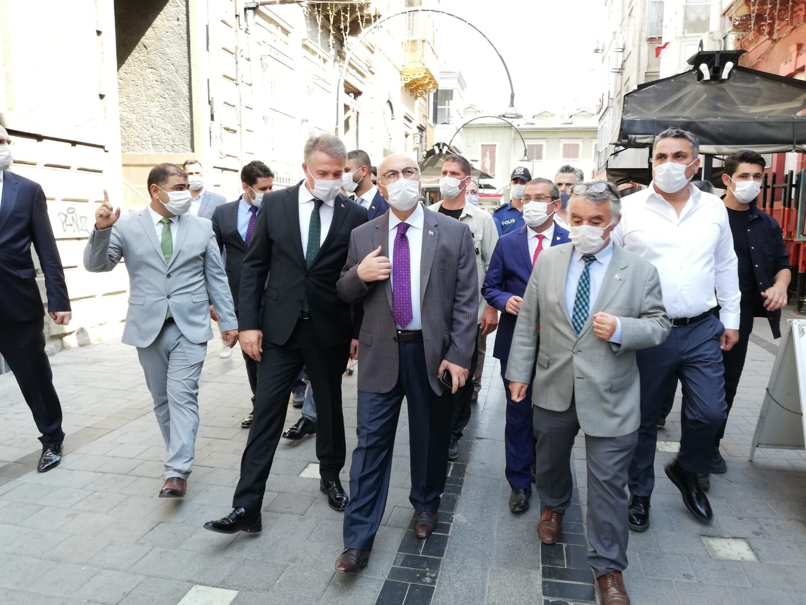 İzmir Valisi Yavuz Selim Köşger, cadde üzerindeki dükkanlara girerek içerideki hijyen koşullarını incelerken cadde üzerinde yürüyen vatandaşlara da maske ve mesafe uyarısı yaptı.