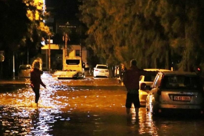İzmir'de aşırı yağış nedeniyle deniz taştı,