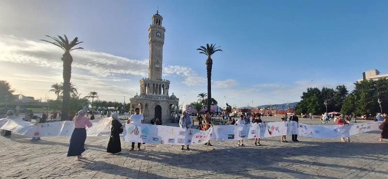 81 ilde eş zamanlı olarak düzenlenen “Filistinli Çocuklar İçin Çiz” etkinliği İzmir’de de büyük ilgi gördü. Yetim Vakfı İzmir İl Koordinatörlüğü'nün IHH İzmir Şubesi'den de destek alarak Konak Meydanı Saat Kulesi önünde düzenlediği etkinliğe aileleri ile birlikte katılan İzmirli çocuklar İsrail’in Gazze ve Filistin’de yaşattığı zulmü resmederek farkındalık oluşturmaya çalıştı.