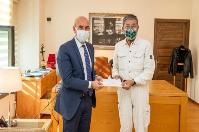 Yoshio Iwamura, İzmir depreminde ailesini kaybeden çocuklara yönelik bir proje hayata geçirmek için de Japonya’da bağış toplamayı planladıklarını söyledi. Iwamura, Hyogo Valisi Governor Toshizo Ido ve Kobe Şehri Belediye Başkanı Mayor Kizo Hisamoto imzalı mektuplarını da Tunç Soyer'e teslim etti. Soyer de konuğuna plaket takdim etti.