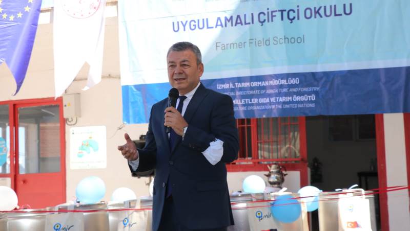 Birleşmiş Milletler Gıda ve Tarım Örgütü FAO ve İzmir İl Tarım ve Orman Müdürlüğü ortaklığı ile İzmir’de açılan Uygulamalı Çiftçi Okulu’nda 6 ilçeden 150 çiftçiye eğitimler veriliyor.