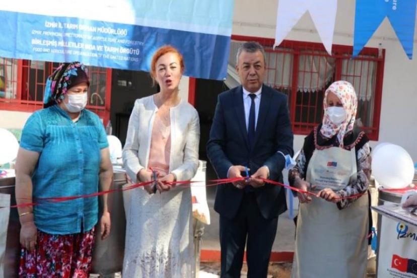 FAO tarafından finanse edilen hibe tanklar, İzmir İl Tarım ve Orman Müdürü Mustafa Özen, FAO Türkiye Temsilci Yardımcısı Ayşegül Selışık, İl Müdür Yardımcıları, İlçe Müdürleri ve Eğlenhoca Mahallesi çiftçilerinin katılımıyla kadın çiftçilere dağıtıldı.