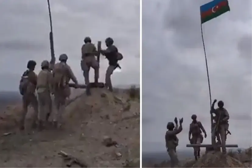 Sosyal medya yer alan görüntülerde, Azerbaycan askerleri tarafından, Ermeni gruplardan temizlenen kritik tepelere Azerbaycan bayrağı asıldığı görüldü.