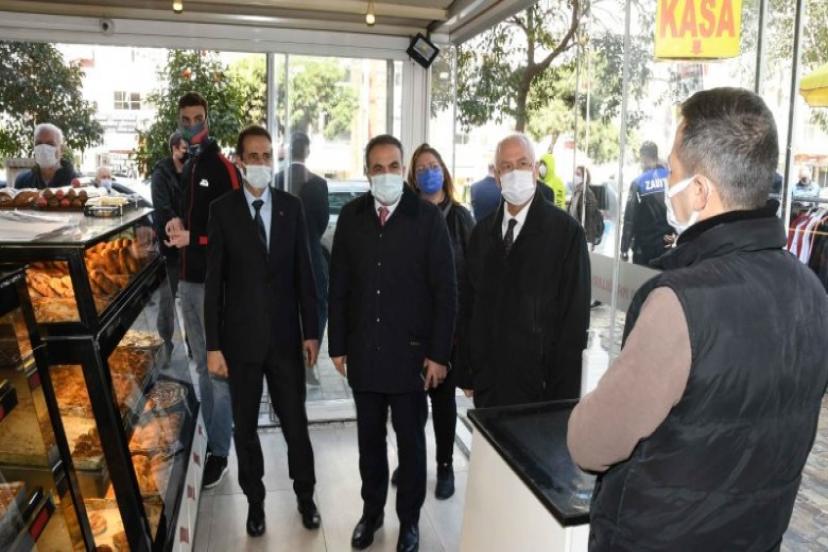 Caddenin, Arap Hasan ve Basın sitesi mahallelerini kapsayan bölümündeki esnafı ziyaret eden Kaymakam Öneği ve Başkan Selvitopu, işyerlerinin aylar sonra yeniden açılması nedeniyle “hayırlı olsun” dileklerini iletti. Ağırlıklı olarak kuruyemişçiler, pastaneler, restoranlar, kafeler, banka şubeleri ve zincir mağazalarda yapılan denetimlerde, esnaf ve vatandaşlardan maske, mesafe ve hijyen kurallarına uyulması istendi.