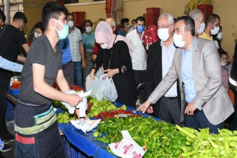 Kaymakam Öneği ve Başkan Selvitopu, pazarcılara hayırlı işler diledi. Ayrıca vatandaşlarla sohbet ederek onların taleplerini dinledi.