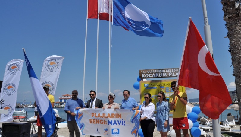 Karaburun, Kuyucak, Bodrum Koyu, Akvaryum Koyu, Ardıç‘tan sonra beşinci mavi bayrağını Mordoğan Kocakum Halk Plajı’nda düzenlenen törende teslim aldı. Kaymakam Eyüp Kaykaç ve Belediye Başkanı İlkay Girgin Erdoğan, TÜRÇEV Temsilcisi Yetkin Karabinalı ile birlikte mavi bayrağı göndere çektiler.