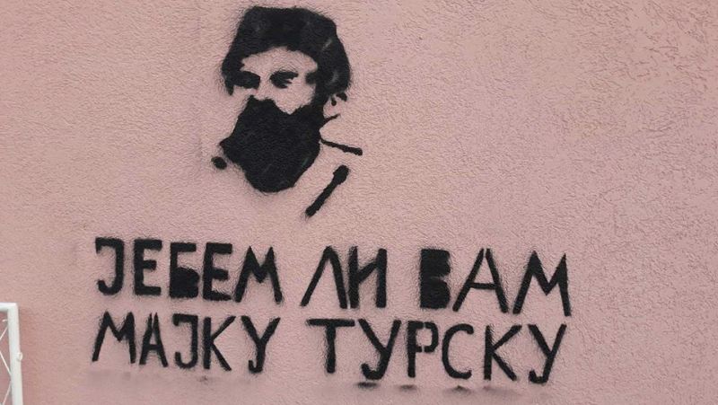 Karadağ'da 30 Ağustos'ta yapılacak seçimler öncesinde, geçmişten gelen kin ve nefretini bu seçim öncesi ortaya çıkararak tansiyonu artırmak amacında olan Sırp Çetnikler Sancak şehirlerinden Berane'de Boşnak evlerinin duvarlarına hakaret içerikli grafiti yazıyor.